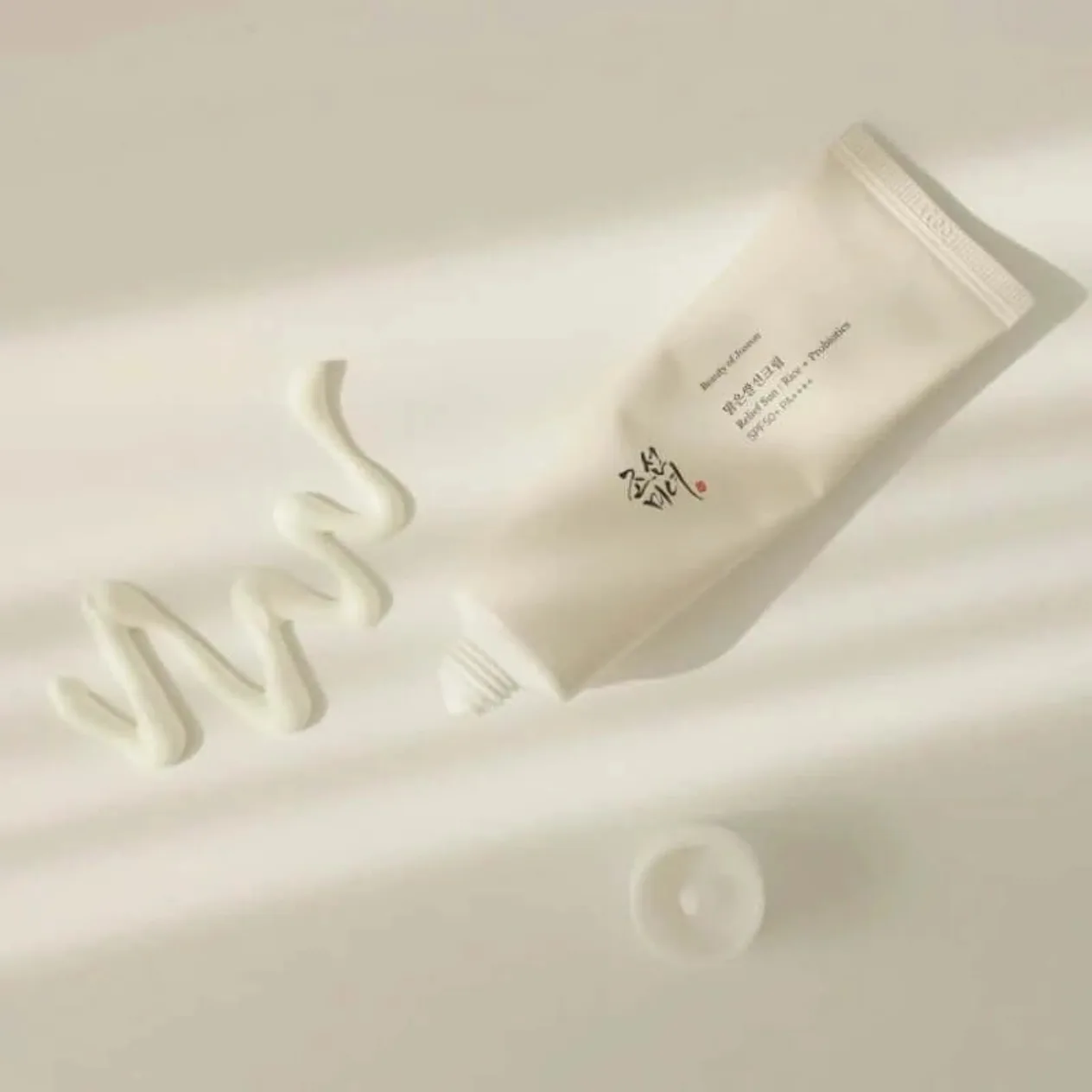 BEAUTY OF JOSEON Relief Sun Rice & Probiotics SPF 50+ PA++++ – lengvas apsauginis kremas nuo saulės. Šis kremas puikiai įsigeria ir suteikia odai natūralaus švytėjimo, nepalieka balto šydo. Tinka naudoti prieš makiažą.