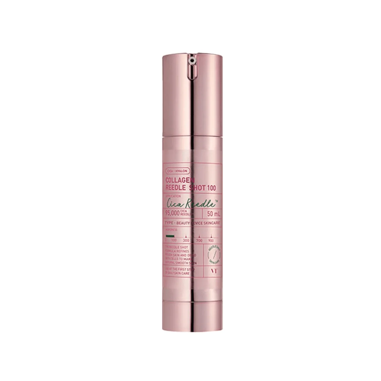 VT Cosmetics Collagen Reedle Shot 100 yra inovatyvus stangrinamasis veido serumas, sukurtas su mikronešėjų technologija, siekiant pagerinti odos elastingumą ir sumažinti raukšlių požymius. Šis produktas stiprina odos struktūrą, skatina kolageno gamybą ir padeda išlaikyti odą jaunatvišką bei stangrią. Naudojant šį serumą oda tampa lygesnė, elastingesnė ir švytinti.