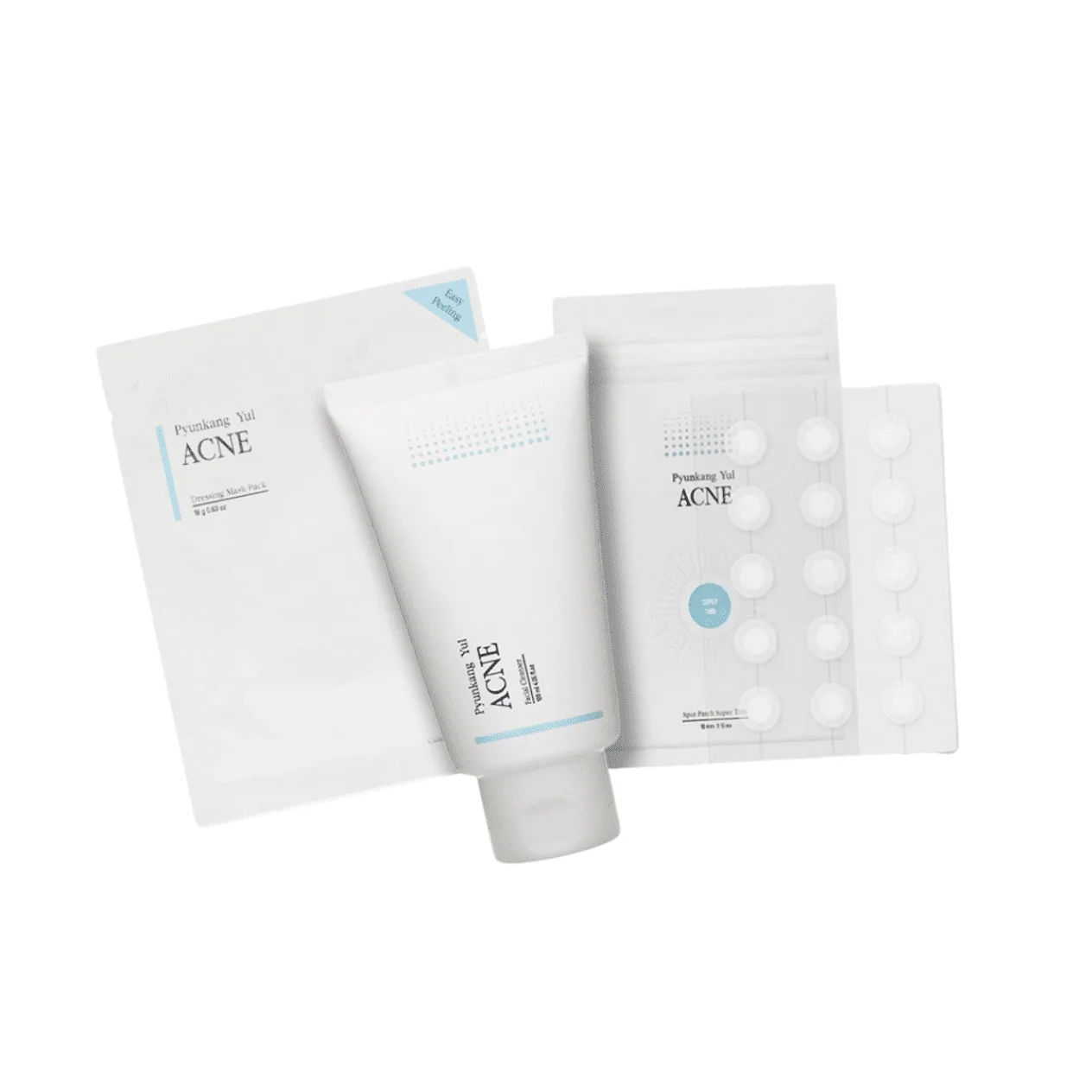 Pyunkang Yul – ACNE komplektukas (valomasis gelis, kaukė nuo spuogų, pleistrai nuo spuogų)